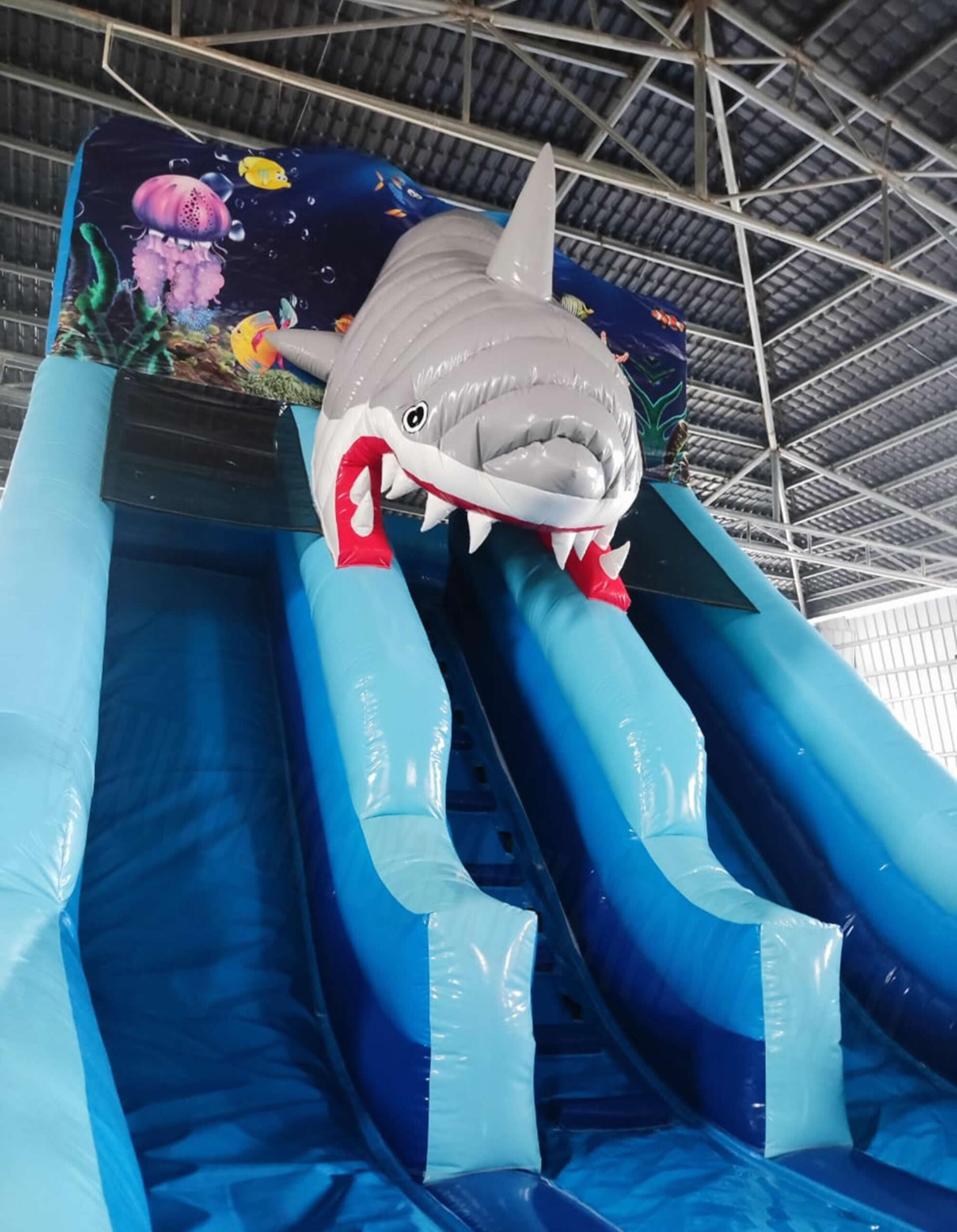 Ovaj vizualno atraktivni tobogan sa glavom morskog psa kroz koju se prolazi do dvije staze za spuštanje krasi brdo morskih motiva.